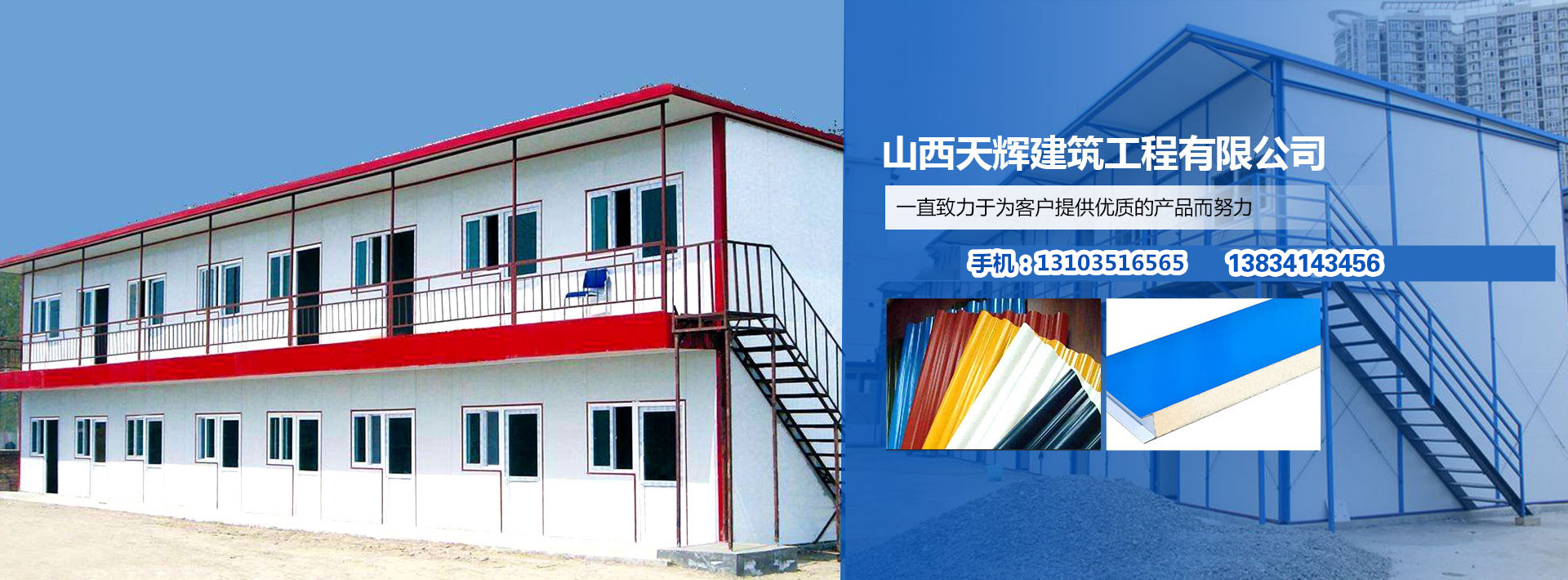 山西天輝建筑工程有限公司是專業(yè)從事彩鋼板生產(chǎn),鋼結(jié)構(gòu)、住人集裝箱、活動房設(shè)計和專業(yè)安裝、維護(hù)的一家企業(yè),我們銷售的產(chǎn)品引進(jìn)全自動彩鋼夾芯板流水線以銷售多種規(guī)格的彩鋼復(fù)合夾芯板...